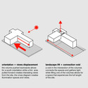 The proposal of the project changes this interaction by displacing a thick volume to the back of the site while a thin volume is pulled forward, creating by such an action a cross diagram that allows for patios to emerge with views, illumination and natural ventilation of the spaces. The intersection of both volumes creates a central void where the connection between the different volumes opens up to the sky.