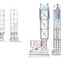 Superimpositions proposes to add to Prentice. Too many buildings have been demolished unnecessarily in Chicago and in many other sites of urban renewal. This project ensures both the preservation of the original building and its adaptation through growth over time. The structural core of Prentice is exploited, extending to support vertical growth. The result is a series of possible additions, which do not discriminate based on architectural style, form, scale, program, or material. This indeterminate approach serves as a vertical timeline of trends in architecture. It also relies heavily on the modernist approach Goldberg had towards plinth and tower, and does so in order to extend square footage and program indefinitely. The icon remains while continuing to grow, quite literally, and is saved not because of nostalgia but for a valuable use and iconic, meaningful presence in the city of Chicago.