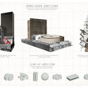 By studying and identifying key buildings in architectural history that have been demolished or added to, our timeline then leads to an exploration of what would happen if some of these significant buildings were added to instead of demolished. We superimposed the demolished buildings with what was built or proposed on the same site. These Demolished Additions led to the generation of a library of generic iconic forms to be combined in an theoretical additions to the existing Goldberg building. This additive method reinforces Goldberg’s unique composition, while allowing the architect of each future addition to compose their own distinct icons.