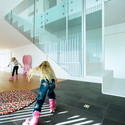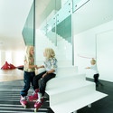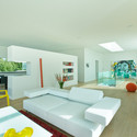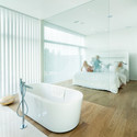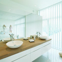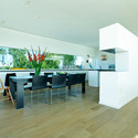 When commenting his own experience of the how the design of the house evolved, the owner said: "yes, we had an exact number of how many meters of closets we needed and so on. We have built a few houses before this and have learned from our experiences and mistakes. We knew that we wanted a house with clean lines without any visual noise and clutter." This is one of the reasons that most of the closets and storage spaces are integrated into, so - called, thick wall - walls that are at least 60-70cm deep. The kitchen bench is 8 meters long and has plenty of drawers for kitchen equipment and even other things that need to be stored away. None of the electrical outlets are visible and all technology controlled by a main control panel in the kitchen. The client admits that he is a "gadget freak" and the house reflects this part of his personality.