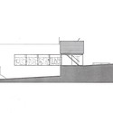 The swimming pool occupies the roof level of the central volume. From below, there is no clear indication of its existence. The surface of the water reaches just below roof level. The lack of guardrail or parapet accentuates the horizontality of the roof, juxtaposed by the apartments jutting in perpendicular directions at each end.