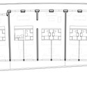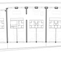 The facade consists of private balconies at the East and large “coursives” at the West side. It expresses a superposition of great horizontal slabs, which also play the role of filter against the sun and the noise. The height of the balustrades varies according to angle of incidence of the noise from the trains passing by. This principle also provides the building a facade that progressively lightens itself to the sky.