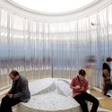 To kick off our coverage of the Venice Biennale, we're bringing you photos of OfficeUS -- the United States' contribution to the national exhibitions organized under the theme of "Absorbing Modernity." The pavilion houses both a repository of information about the history of architectural firms in the US (with a focus on the US's role in exporting architecture) and serves as the base of operations for a new architectural firm that was created solely for this year's biennale. The research, collected into booklets, lines the walls of the space. While visitors mill around the pavilion, the members of OfficeUS work at specially designed tables. The output and deliverables of the office will be determined as the Biennale progresses. We also got the chance to speak to the organizers, so stayed tuned for video interviews with the curators and designers of the US Pavilion (coming soon!). For now, however, read on to the see the curator's statement on the exhibit.