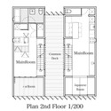 Another important aspect of House TTN was its structure. As the decision had been taken not to separate the homes completely, the residents wished to retain an option that would enable them to cut the building in half, left and right, in case they wished to do so in the future. In order to make this possible, the two sides of the structure including the foundation are completely independent of each other, and designed to guarantee durability after being divided. Of course, if two new separate buildings were to emerge, they would both need to pass the various building regulations. Therefore, this aspect greatly influenced the initial plan and form of House TTN. However, it may also be said that because of this requirement, it was possible to achieve a bold design, shaping the areas that would be removed if the house were to be divided into outdoor common decks. It is unclear whether this option will be taken in the future, but having an alternative will surely encourage friendly and active communication between the families.