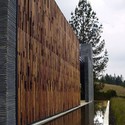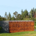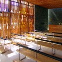 Material wise, the rigid structures are stones, while the mobile body is made of steel, glass and wood in an interwoven design. The reflecting pond, on one of the chapel’s sides, dilutes the massive structure into the landscape, and it also accents and distorts the volume to make its density to fade away.