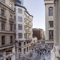 Double skin façades: Almost a self-explanatory name for façade systems consisting of two layers, usually glass, wherein air flows through the intermediate cavity. This space (which can vary from 20 cm to a few meters) acts as insulation against extreme temperatures, winds, and sound, improving the building's thermal efficiency for both high and low temperatures. Perhaps one of the most famous examples of double-skin facades is Foster+Partners' 30 St Mary Ax Building, "The Gherkin."