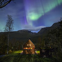 Responding to the region’s extreme atmospheric conditions, Skylight emits a range of pure color light patterns that contrast and complement the blended luminous tones of the dawn and twilight Nordic sky. Conceived of as an inverted chandelier, Skylight’s light fixtures are mounted to face inward and illuminate the structure’s interior surface. Its programmable LED system is animated to change in brightness and hue, and produce distinct patterns during arrival, theater calls, intermission, departure, and after hours.