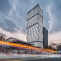 Designed in collaboration with MZA and Azrieli Group, the KPF scheme takes for the form of a spiraling scroll, with the outer layer of the spiral wrapping around an existing retail base. As the motif ascends, the façade wraps around the shaft of the new tower, narrowing to shape optimum office floorplates. At the top, the smaller floorplates will accommodate residential and hotel programs.